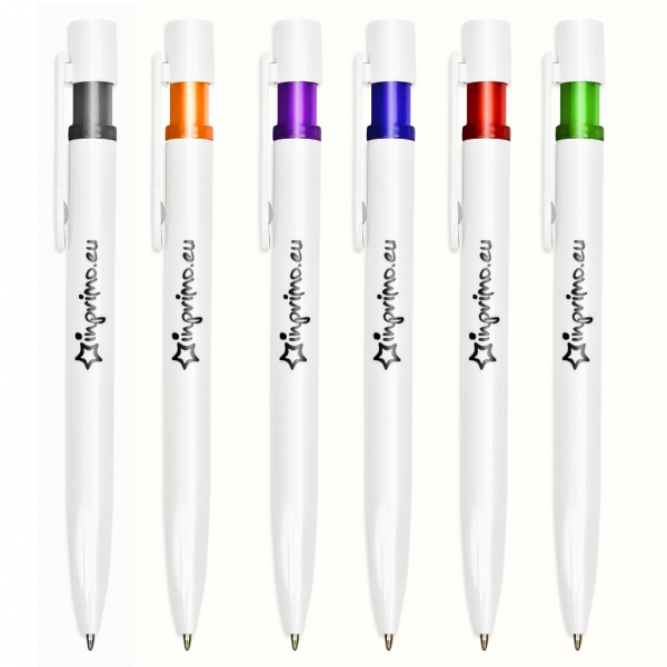 Długopisy wykonane z białego, mętnego plastiku stanowią najuniwersalniejszą formę reklamy. Ze względu na kolor mogą one stanowić nieodpartą pomoc w rozpowszechnianiu wizerunku każdej firmy, instytucji lub jakiegokolwiek masowego przedsięwzięcia. Właśnie ze względu na wielofunkcyjność i uniwersalny charakter wprowadziliśmy do oferty model Kobe. Prezentowany długopis w całości wykonano z mlecznego, nieprześwitującego polimeru. Jedyną ozdobą, przełamującą monotematyczność korpusu, jest obudowa mechanizmu włączającego wykonana z barwnego, transparentnego plastiku i umieszczona pod nakrywką przycisku. Nieporównywalnym atutem modelu Kobe jest przede wszystkim możliwość umieszczenia dodatkowego nadruku na klipsie, co pozwala zamieścić więcej istotnych informacji.