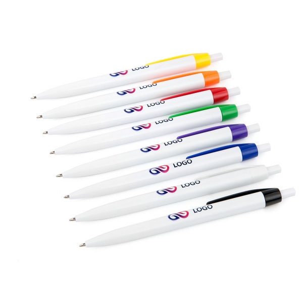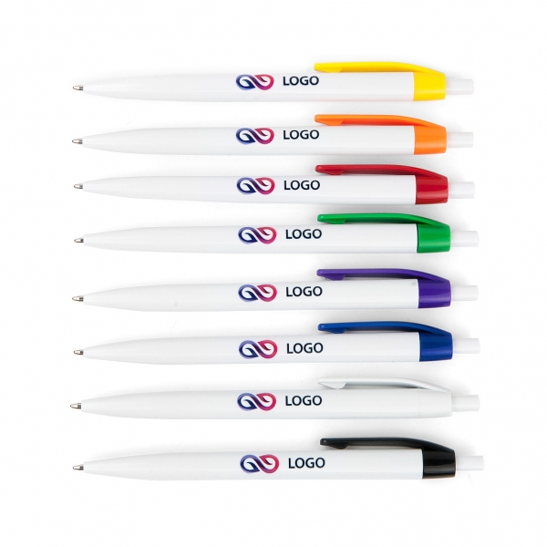 Poszukujących prostej, nowoczesnej stylistyki proponujemy model długopisu Netto. Biały, gładki oraz prosty korpus stanowi doskonałe tło dla nadruku reklamowego w każdym kolorze. Uzupełnieniem całości jest klips dostępny w przyciągających wzrok, intensywnych barwach, które podkreślają dowolny nadruk reklamowy.