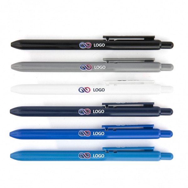 Waga: 6,8 g / Długość: 140 mm / Rozmiar nadruku: 55 x 6 mm / Typ wkładu: Slim - niewymienny / Kolor wkładu: niebieski / Odblokowanie wkładu: wciśnięcie / Tworzywo: ABS / Opakowanie: 100 szt. / Kolor: do wyboru (granatowy, niebieski, czarny, zielony, czerwony, pomarańczowy, fioletowy, biały, żółty, szary, różowy, jasny niebieski) /
