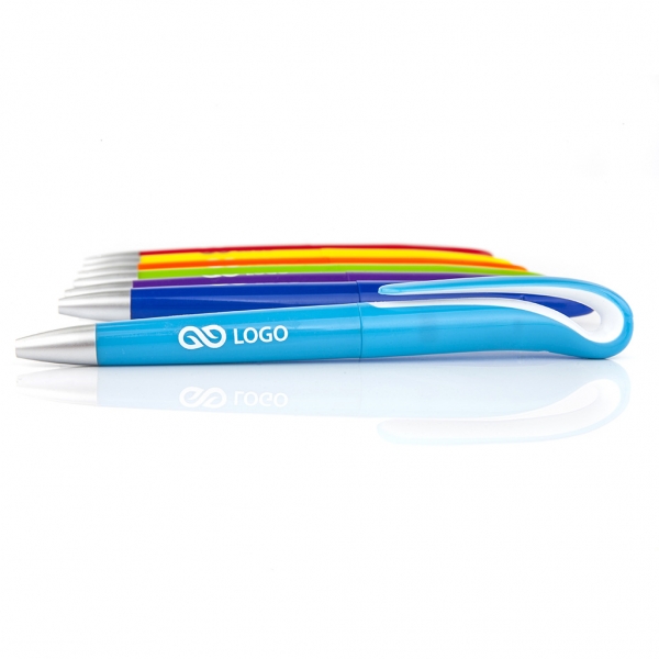 Waga: 14,1 g / Długość: 147 mm / Rozmiar nadruku: korpus 45 x 7 mm, klips 30 x 6 mm / Typ wkładu: Elite - wymienny / Kolor wkładu: niebieski / Odblokowanie wkładu: przekręcenie / Tworzywo: ABS / Opakowanie: 100 szt. / Kolor: do wyboru (niebieski, czarny, zielony, czerwony, pomarańczowy, fioletowy, żółty, jasny niebieski) /
