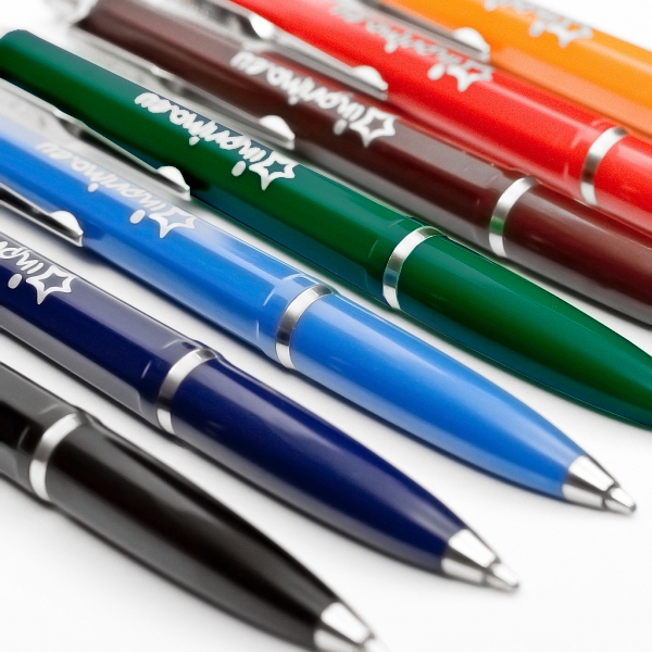 Nadruk na długopisach wykonujemy techniką tampodruku w 10 kolorach (bez dopłat). Aby sprawdzić dostępne kolory nadruku lub/i samodzielnie przygotować projekt należy pobrać makietę klikając TUTAJ. W przypadku innych kolorów nadruku (niż wskazanych 10 kolorów) może być doliczona dodatkowa dopłata.