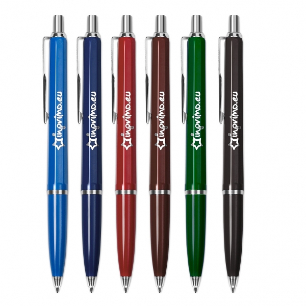 Waga: 11,5 g / Długość: 136 mm / Rozmiar nadruku: korpus 50 x 6 mm / Typ wkładu: Elite - wymienny / Kolor wkładu: niebieski / Odblokowanie wkładu: wciśnięcie / Tworzywo: ABS / Opakowanie: 50 szt. / Kolor: do wyboru (zielony, czarny, czerwony, ciemny niebieski, jasny niebieski) /