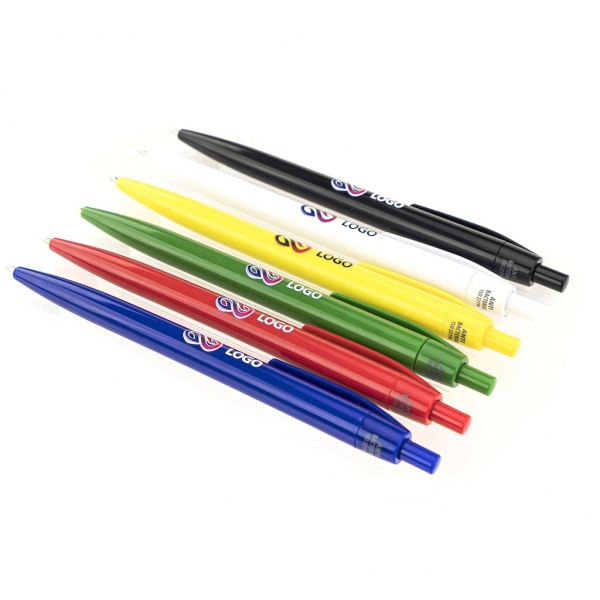 Waga: 5,5 g / Długość: 138 mm / Rozmiar nadruku: 55 x 6 mm / Typ wkładu: Elite - wymienny / Kolor wkładu: niebieski / Odblokowanie wkładu: wciśnięcie / Tworzywo: ABS / Opakowanie: 100 szt. / Kolor: do wyboru (niebieski, czarny, zielony, czerwony, biały, żółty) /
