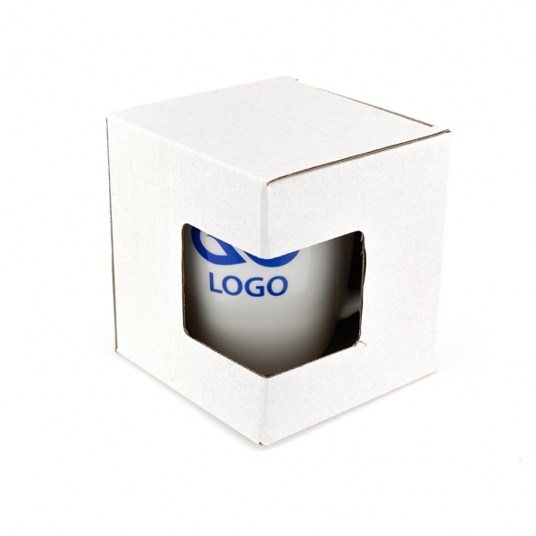 Waga: 290 g / Wysokość: 107 mm / Średnica: 66 mm / Rozmiar nadruku: 40 x 40 mm / Pojemność: 330 ml / Tworzywo: porcelana / Opakowanie: 60 szt. / Kolor: biały /