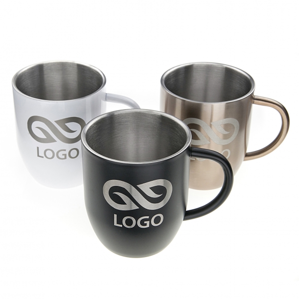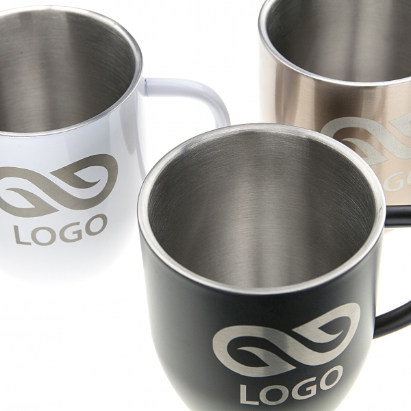Waga: 140 g / Wysokość: 90 mm / Średnica: 80 mm / Rozmiar nadruku: 40 x 45 mm / Pojemność: 380 ml / Tworzywo: stal nierdzewna / Opakowanie: 10 szt. / Kolor: do wyboru (czarny, biały, złoty) /
