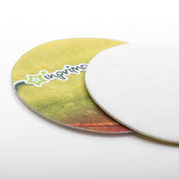 Waga: 5,5 g / Średnica: 97 mm / Rozmiar nadruku: średnica 97 mm / Tworzywo: filc / Opakowanie: 50 szt. /