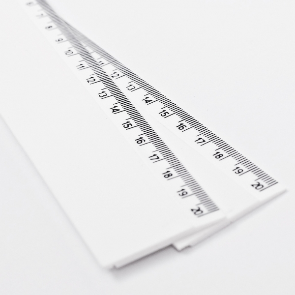 Nadruk na linijkach wykonujemy techniką tampondruku (w 1 lub 2 kolorach). Aby sprawdzić dostępne kolory nadruku lub/i samodzielnie przygotować projekt należy pobrać makietę klikając TUTAJ. W przypadku innych kolorów nadruku (niż wskazane 10 kolorów) może być doliczona dodatkowa dopłata.