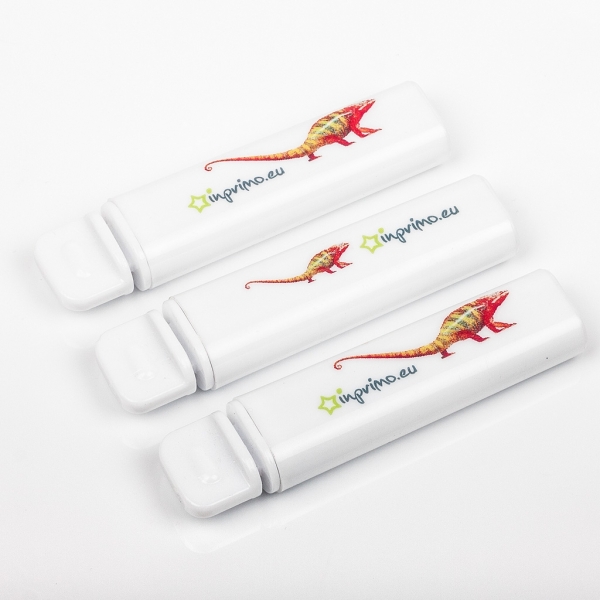 Waga: 32,7 g / Wymiary: 100 x 23 x 15 mm / Rozmiar nadruku: 50 x 8 mm / Tworzywo: ABS / Opakowanie: 50 szt / Kolor: biały /