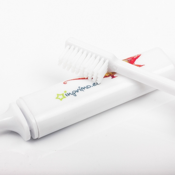 Nadruk na podróżnych szczoteczkach wykonujemy techniką druku UV w pełnym kolorze (CMYK). Aby samodzielnie przygotować projekt należy pobrać makietę klikając TUTAJ.
